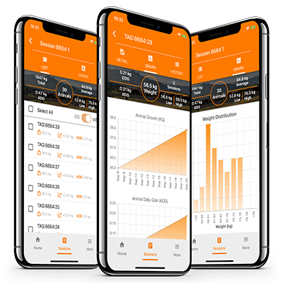 Registre os pesos do rebanho e as sessões no seu telefone